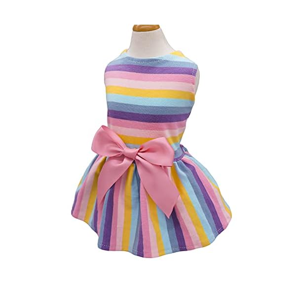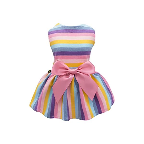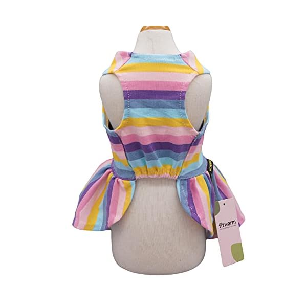 Fitwarm 100% Cotton Dog Dresses Pet Clothes for Doggie Striped Dress Cat Vest Puppy Shirts Colorful Rainbow Pink Small