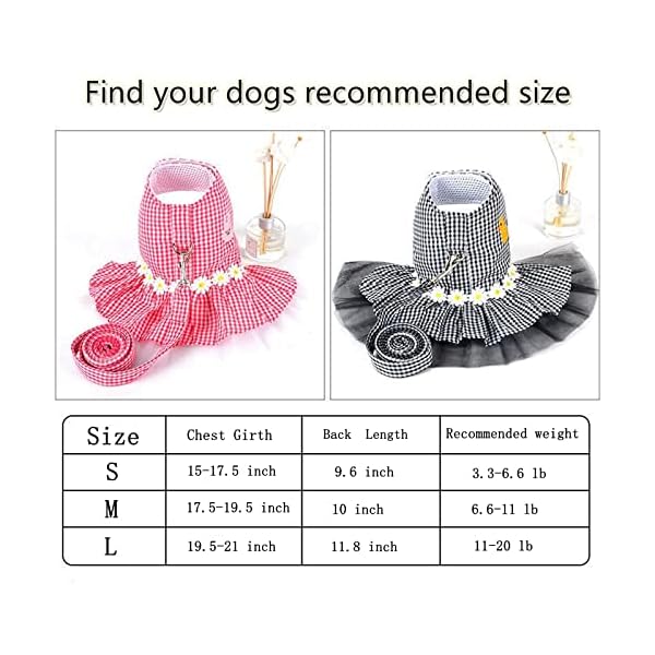 Small Dog Dress with Leash Set Adjustable Dog Harness Dress with D Ring Breathable Walk Doggie Outfits for Puppy Girl…